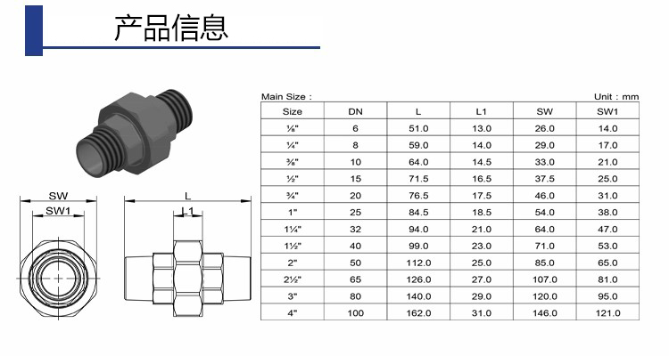 | 不(bu)鏽鋼雙頭外牙(ya)活接管件 | |
