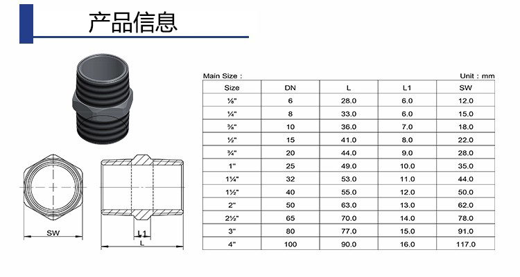 | 尺(chi)寸 | 1/8” ~ 4” |